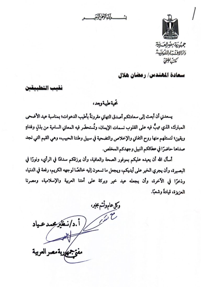المهندس / رمضان هلال نقيب عام التطبيقيين يتقدم برسائل التهنئة إلى جموع…